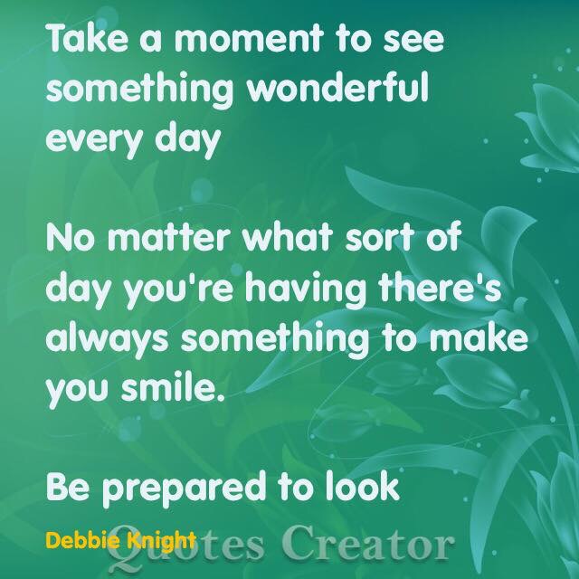 My dear friend, Debbie, posted the above today and it is so true. It is better to look for something to smile about than dwell on the sadder elements of life.