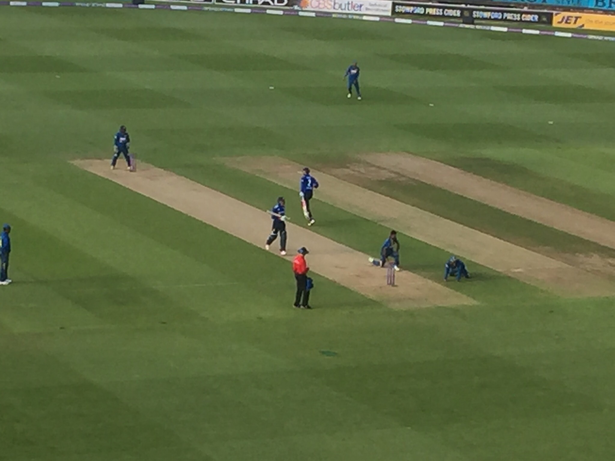 Up early again, Andy had offered a lift to Gloucster’s ground for another ODI. Optimistic that our luck would hold with the weather, sundresses were order of the day. It was regretted later, but can’t blame the girls for trying.