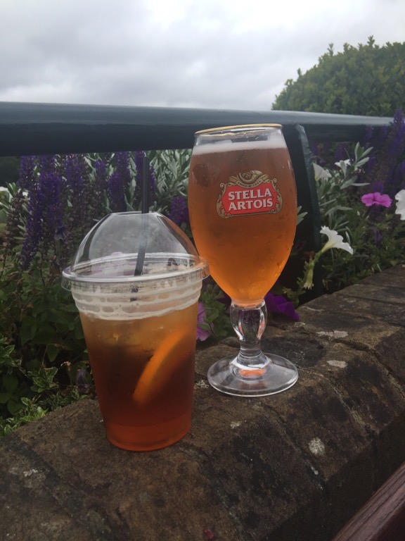 A priority was to find something to eat, so sandwiches, crisps and strawberries and cream were chosen. A Pimms and a Stella were our drinks of choice.
