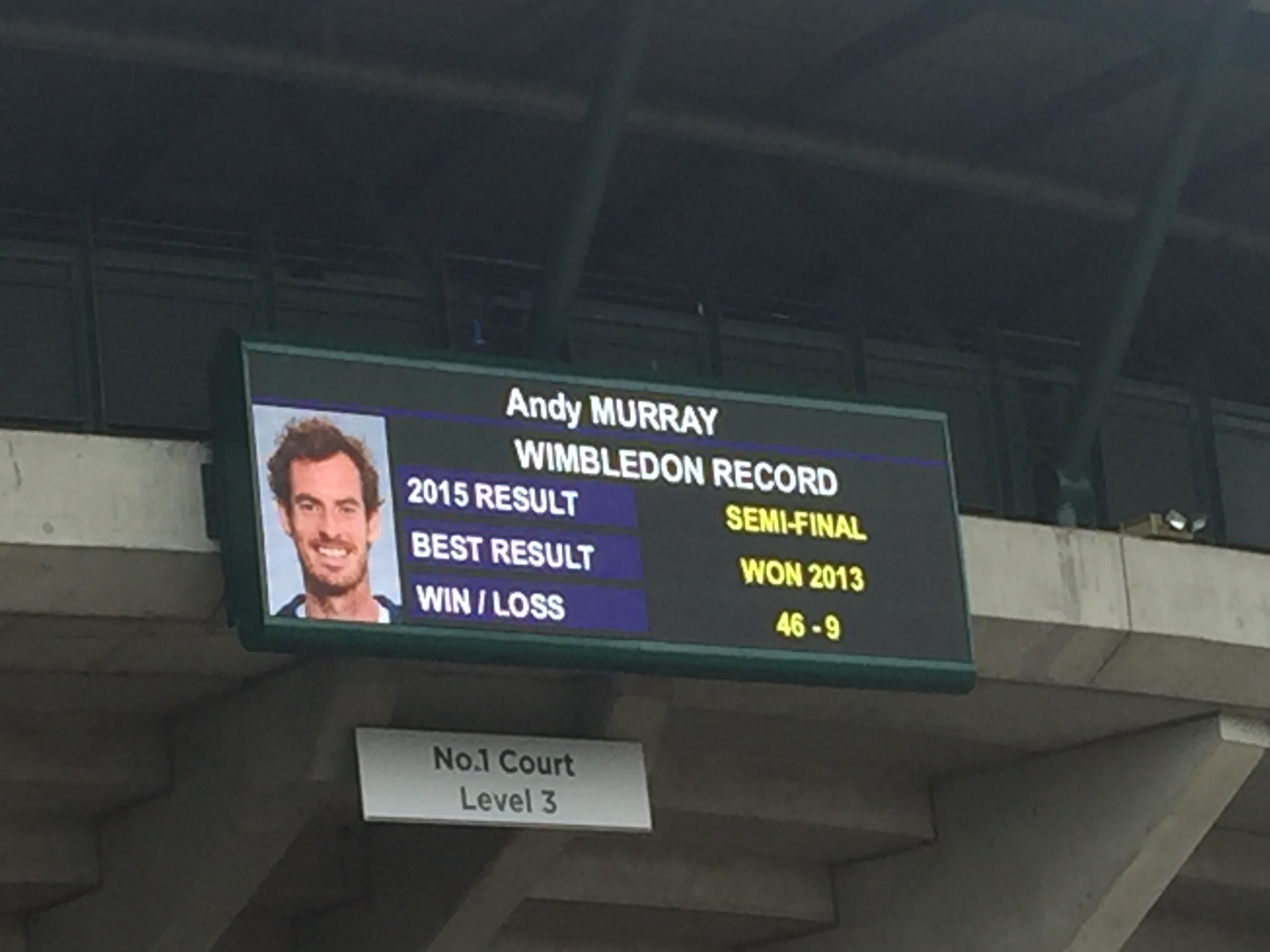 The power, the deft strokes across the net, the precision at speed, my heart pounding, feeling nervous for Andy, and his loved ones, coupled with messages, photos and shared conversations with those around us just heightened the whole experience. At one point Milos served the second fastest serve at Wimbledon 147 mph, which Andy returned! One set up and a trip to the loo was needed.