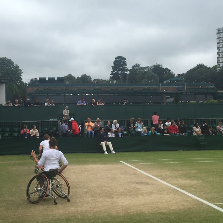 A quick photo in front of centre court and we watched the wheelchair women’s doubles warm up.
