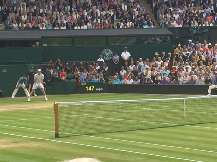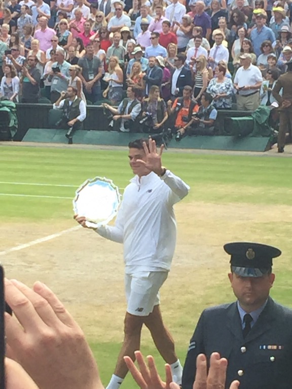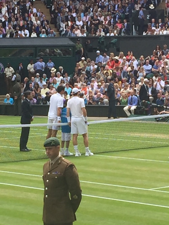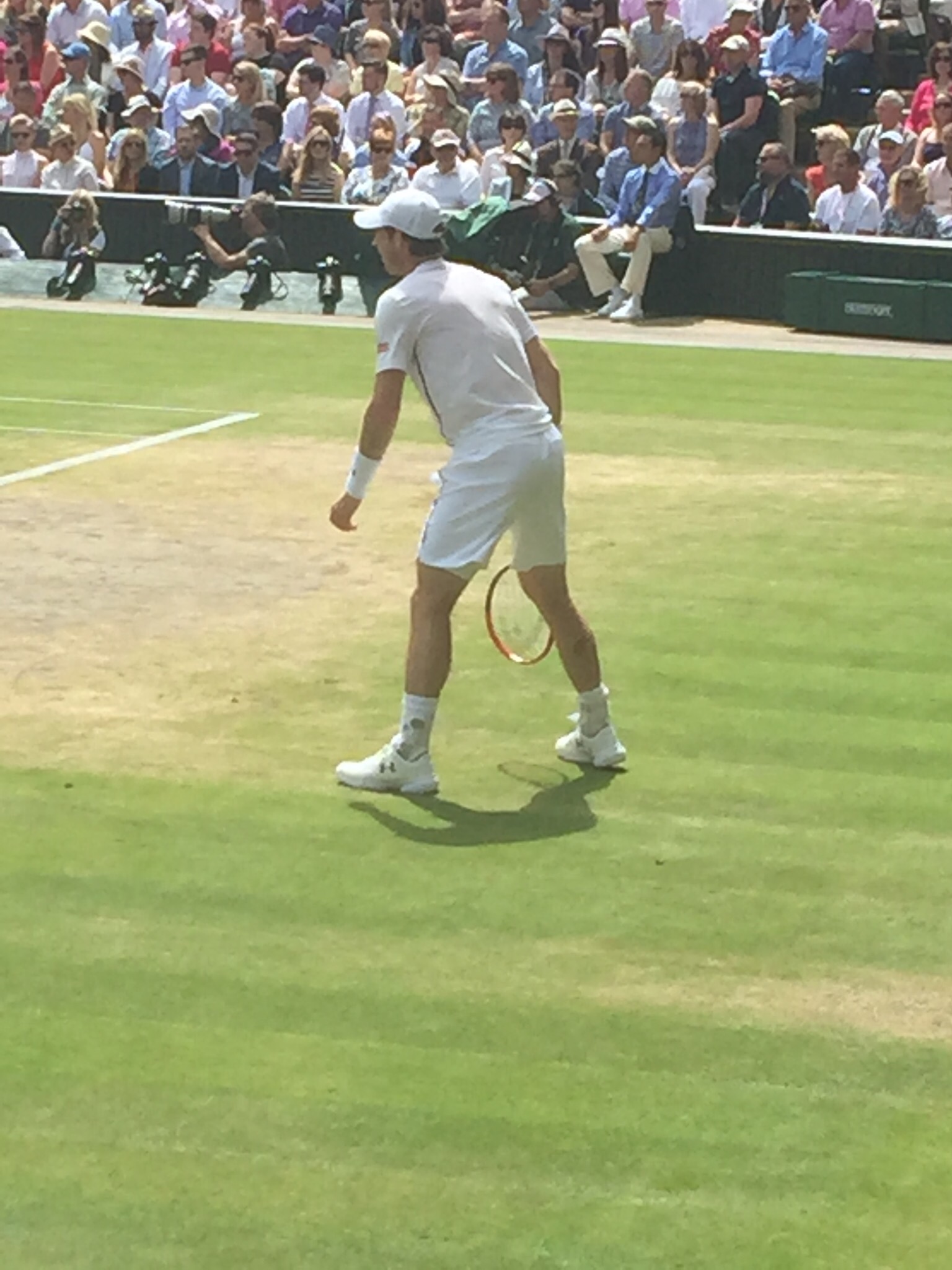 I have always wanted to go and with a July birthday, felt that it would be a great treat, and a treat it was seated by the baseline , seven rows from the front. As a Scot, I also wanted to see Andy Murray win his second Wimbledon, and as the previous days had progressed it seemed that all was on course for that to happen. But Milos has a huge serve and had beaten Roger Federer to secure his final place, so it wasn’t a certainty.