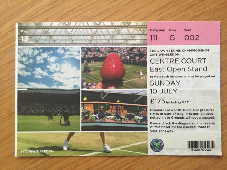In November last year I entered the ballot for Wimbledon tickets for the second year and to be honest, forgot all about it, until February when a letter arrived to say I had been allocated two tickets for Centre Court on the 10th July. A quick calculation, the realisation hit that they were tickets on Men’s Final Day!