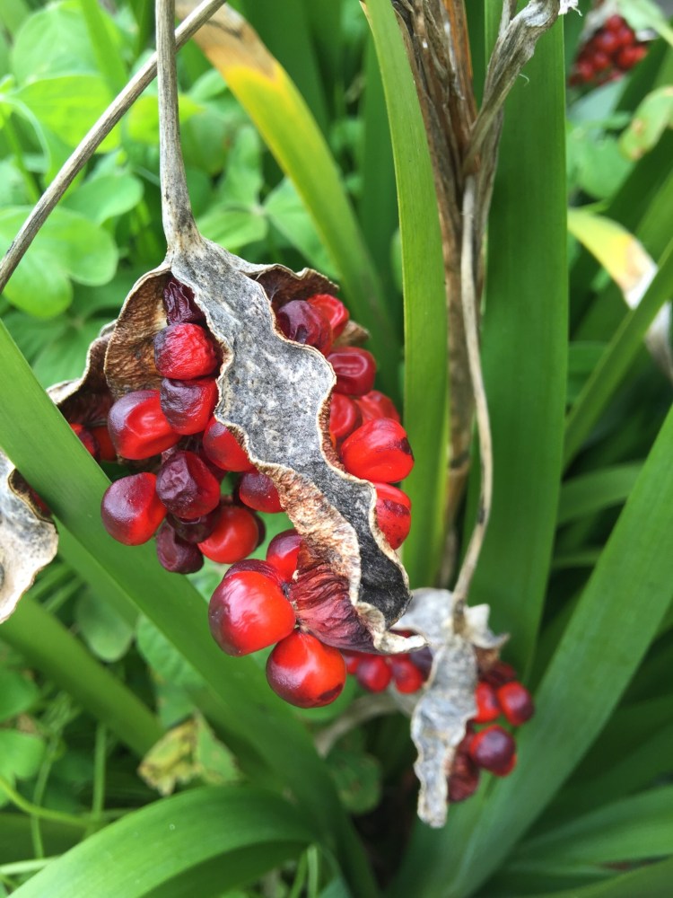 My garden has given me pleasure and although i don’t spend as much time in it as I should, I took this photo of irises after flowering. These berries look like little red jewels and look dazzling in the sunlight.