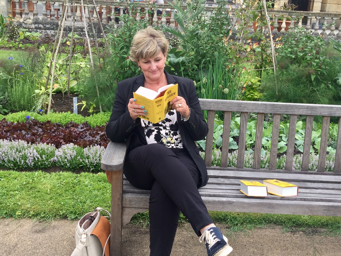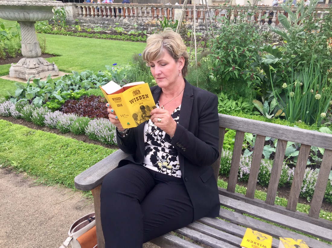 We stopped for the obligatory cream tea and wandered around the stalls where books were being sold. Debbie bought 3 wisdens at a knock down price. For drop everything and read at school I got of photo of me reading one.