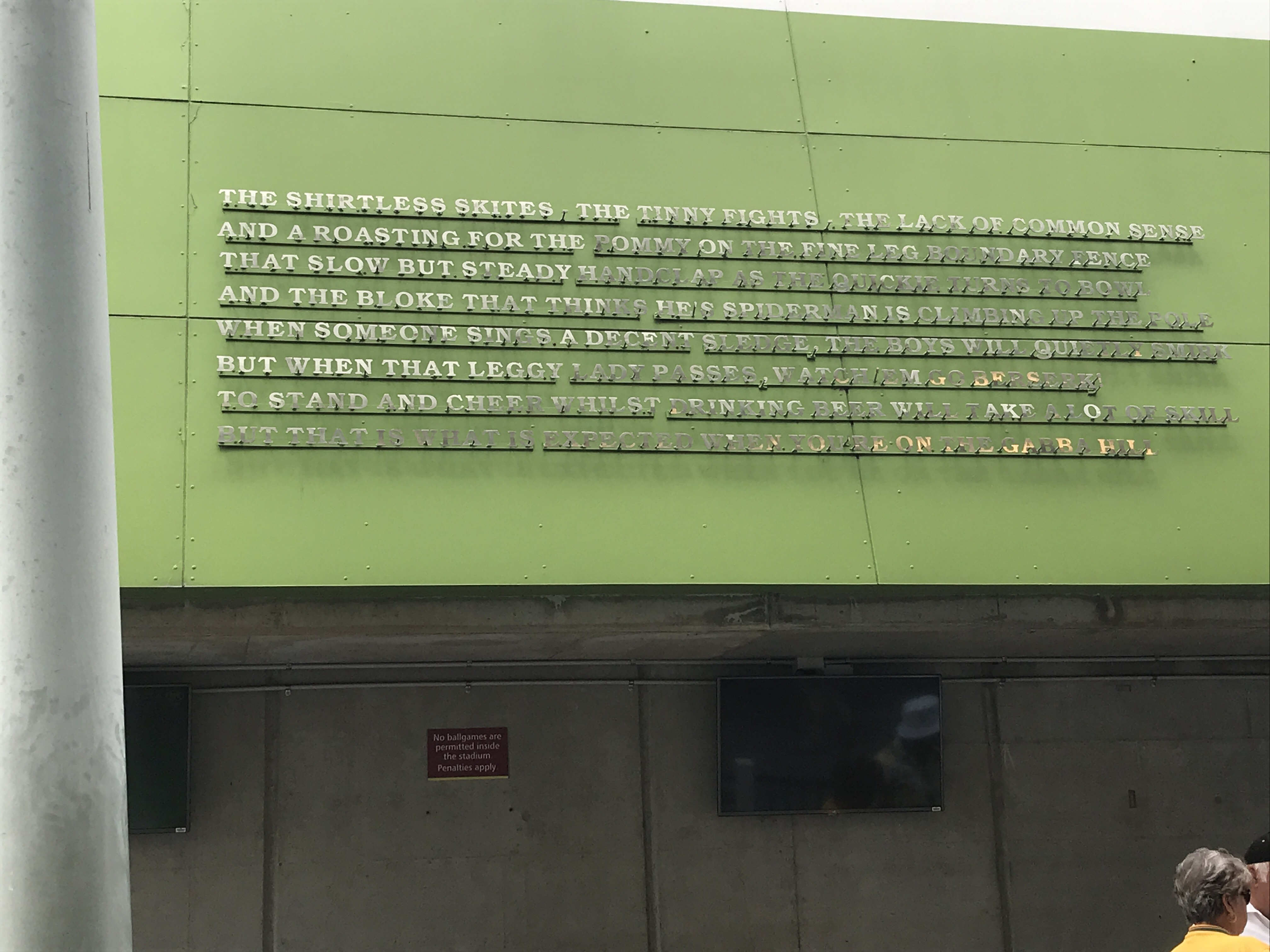 The crowd was noisy, and the drinking that can change how people behave, excessive. The profanities that we’re heard made me uncomfortable, the comments about ‘pommies’, unnecessary but I understand that this is all part of it.