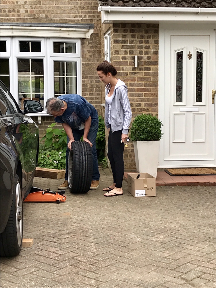 Georgina said she would fill with air, so after a tea we said more goodbyes and not long into the journey, quite clearly something was wrong with the tyre!