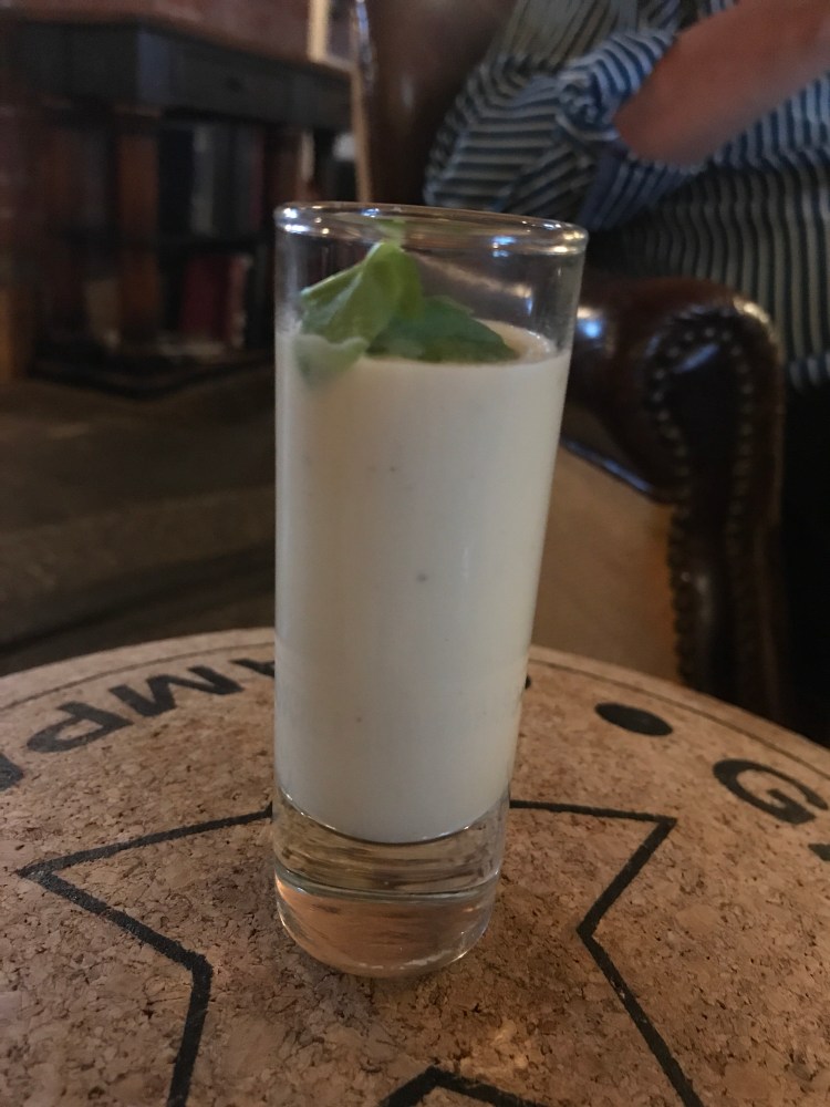 The foghorn signalled the call to the victory bar and an amuse bouche of cauliflower veloute followed