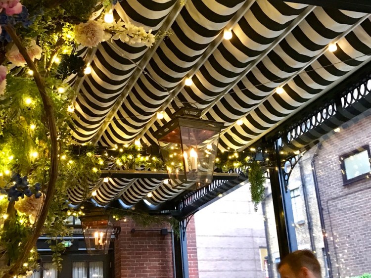 Last treat for Kevin a meal with friends at Dalloway Terrace in London.