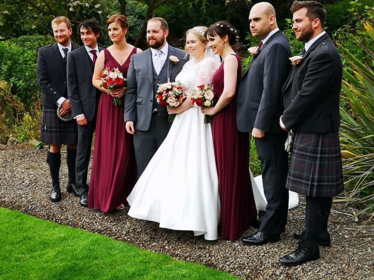 Photos followed, the speeches, then dinner. The cake was cut, the band played and guests danced with kilts aplenty swaying!