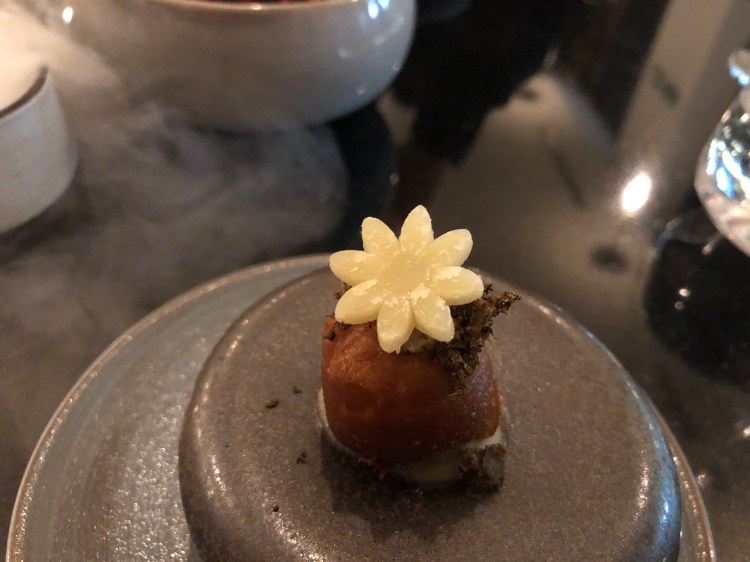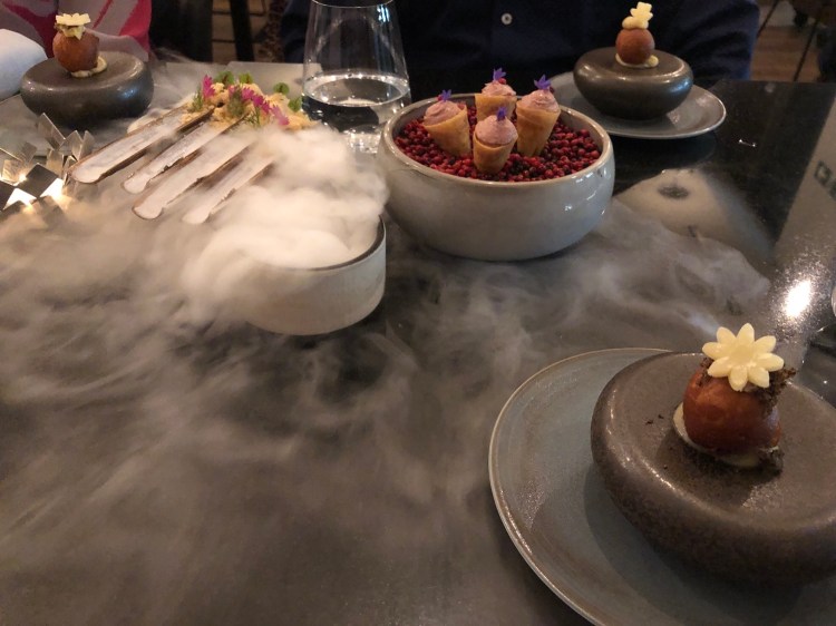 I’d booked Frog by Adam Handling and we were looking forward to it. We settled on the 9 course meal with matching wines. It was brilliant, a real taste sensation and a sense of theatre with every course! I loved every moment, great to catch up too.