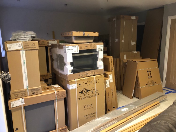 The kitchen was duly delivered and work is progressing nicely although still five days to wait for work top but that is still earlier than predicted.