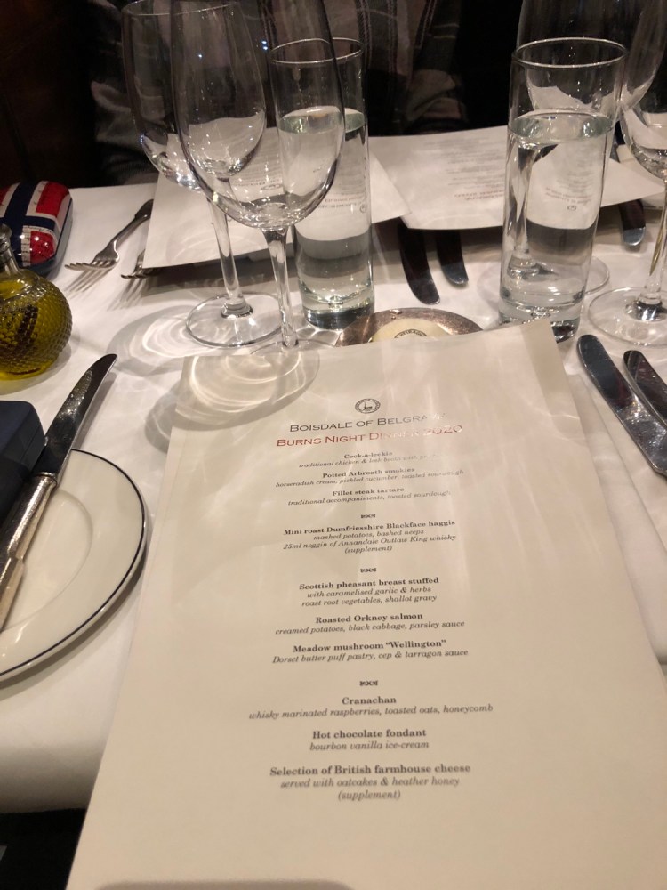 A quick trek across London to meet friends to celebrate Burn’s night: what a treat it was. The address to the haggis, food, whiskey and company were all excellent!