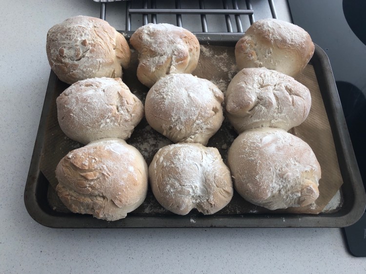 A made floury rolls and sausage patties, poached eggs and ta da-fakeaway sausage and egg ‘muffins’ for breakfast.