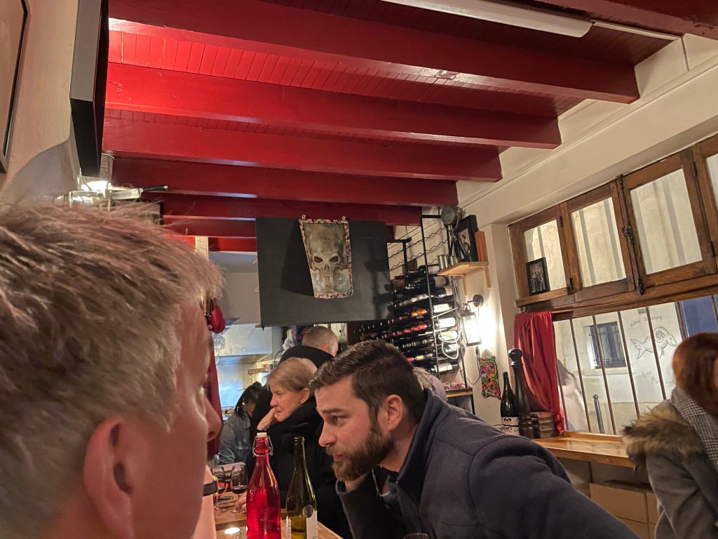 I’d booked restaurants in advance and first up was Chez Pitou. We had a fabulous meal there, onion soup, steaks ( I had Royan pasta) and delightful desserts, washed down with a bottle of red. We were all stuffed.