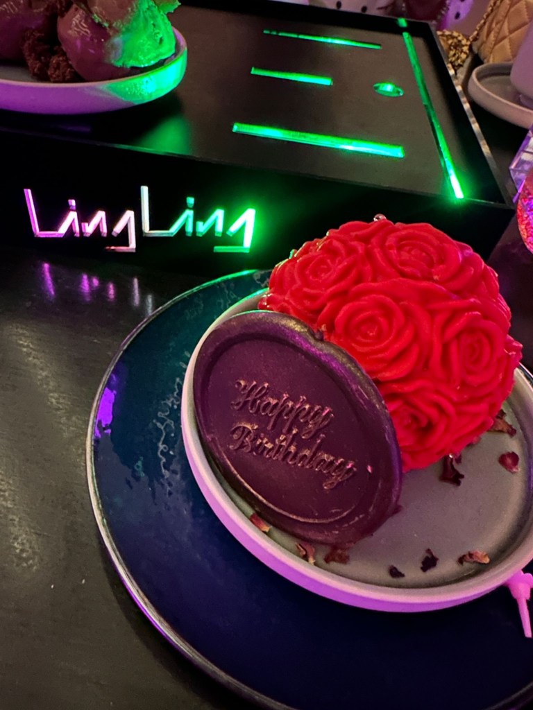 We returned to the hotel for an afternoon by the pool, before dinner at Ling, Ling, within the hotel. we were thoroughly spoiled and a dessert to celebrate Georgina’s birthday was so sweet.
