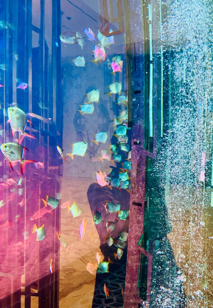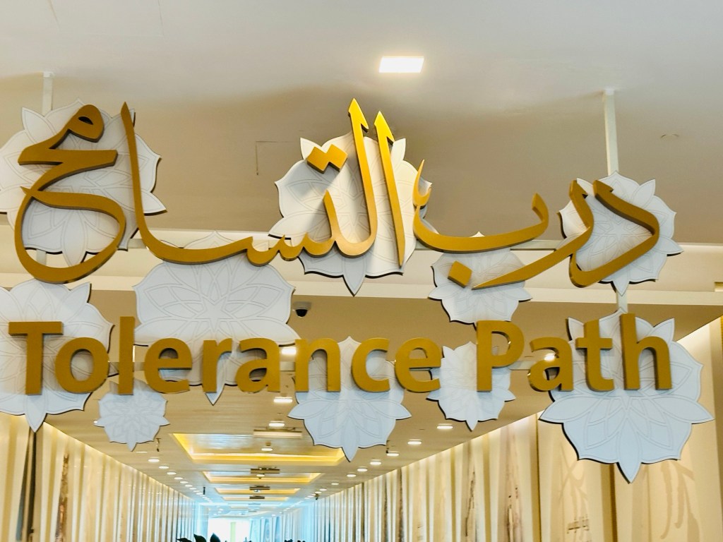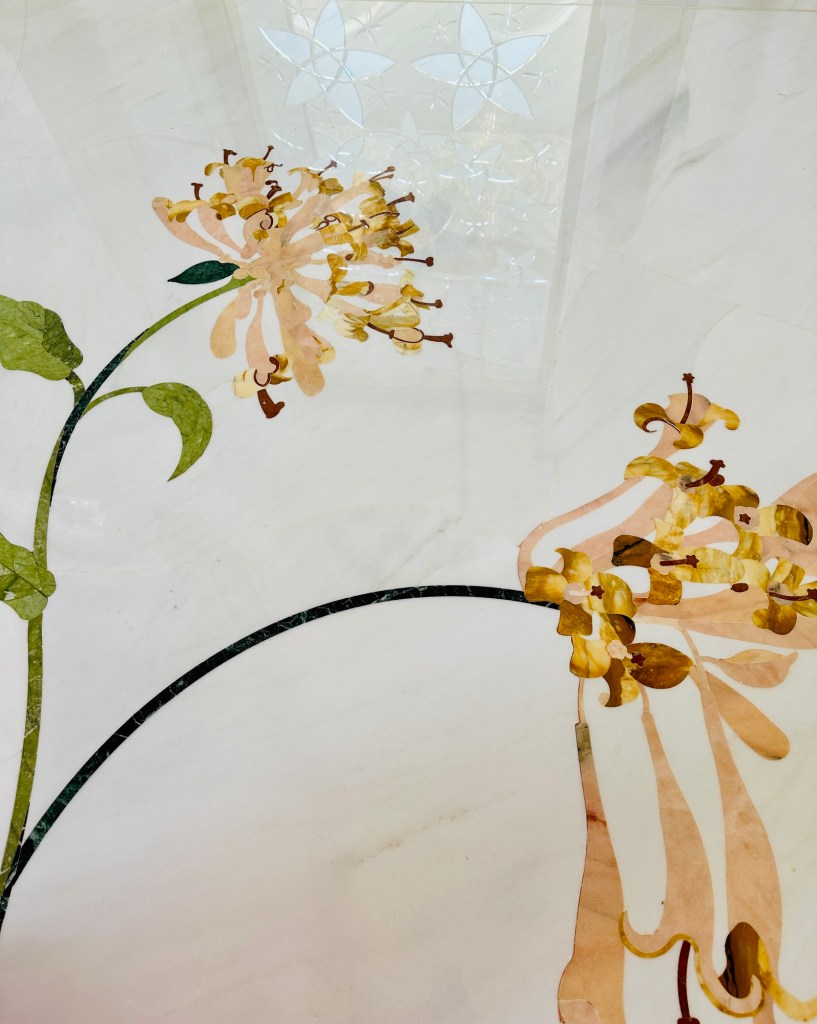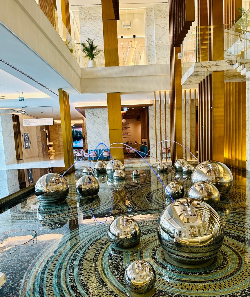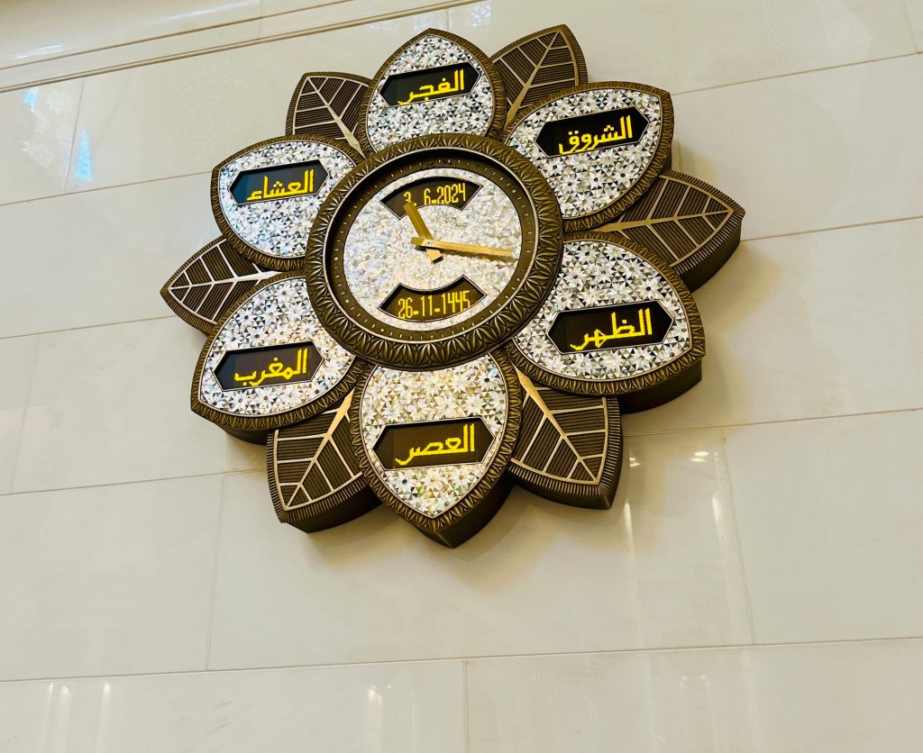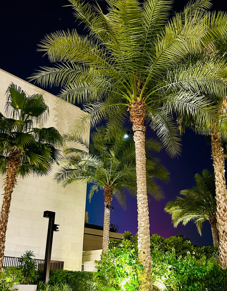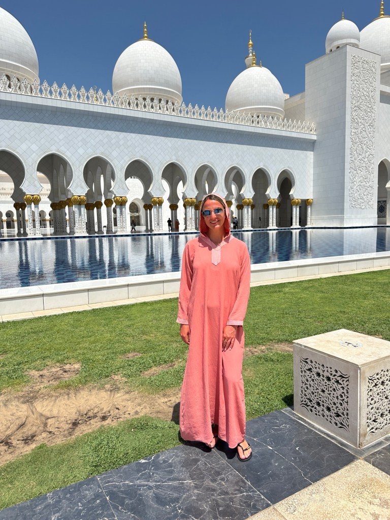 We booked a trip to the Grand Mosque in Abu Dhabi ( pronounced Abu Zabi) which was worthwhile visiting, and wearing an abaya obligatory in order to enter. The white marble is beautiful to see and touch. The chandeliers are a sight to behold. It felt peaceful although the incessant pouting and posing for photographs of visitors for the ‘gram’ did detract from the serenity of this building.