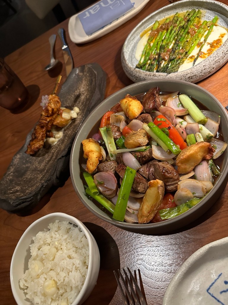 Dinner was booked for La Mar, the Peruvian restaurant. We dressed for dinner and we took the lift up to La Mar. The food was delicious and for me there were a few alcohol free options.