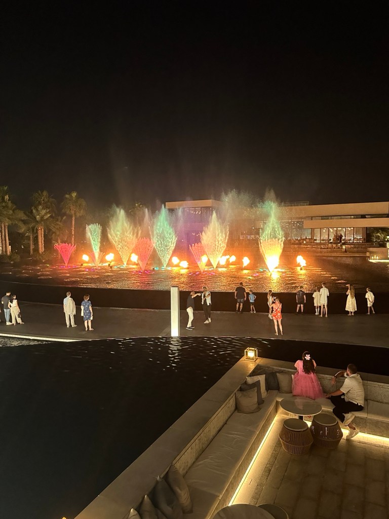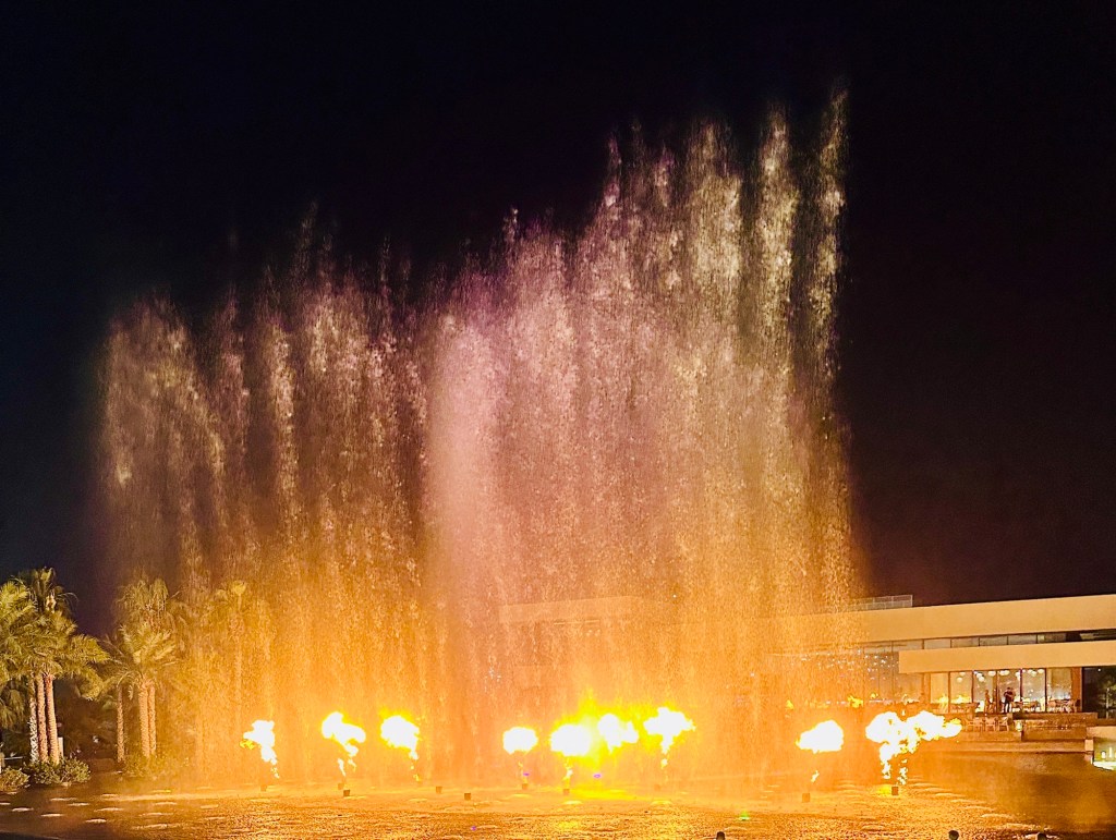 The evening ended watching the fountain show with music, colour and fire.